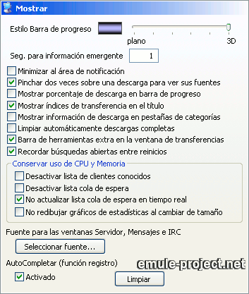 esta lista puede desactivarse con esta opción.