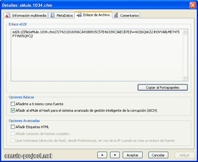 Enlace eD2k en HTML