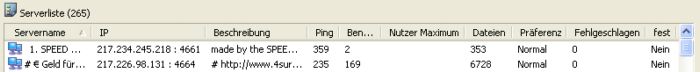 Beschreibung der Serverliste