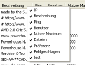 Um eine Spalte der Serverliste auszublenden oder auch wieder einzublenden klickst Du einfach mit der rechten Maustaste auf einen Spaltennamen. Dadurch wird dir dann das folgende Auswahlmenü angezeigt