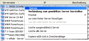 Wenn Du mit der rechten Maustaste auf eine Zeile in der Serverliste klickst öffnet sich das folgende Servermenü.