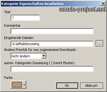 Jeder Kategorie kann ein eigens Verzeichnis für eingehende, also fertig heruntergeladene, Dateien zugewiesen werden.