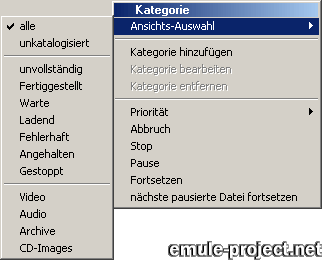 Zusätzlich kann ein Dateiauswahl auch über das Kontextmenü der Downloadliste einer Kategorie zugeordnet werden.