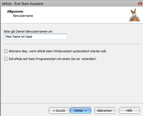 Wenn du eMule nach der Installation startest erscheint der "Erst-Start-Assistent" der dir dabei hilft eMule einzustellen. Die meisten Einstellungen werden erklärt und im Allgemeinen sind die Standardeinstellungen vollkommen in Ordnung - wenn du also etwas nicht verstehst dann lasse es wie es ist. Ein oder zwei Punkte verdienen jedoch mehr Beachtung: