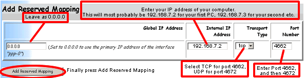 Klicke auf Add Reserved Mapping, damit du einen neuen Port