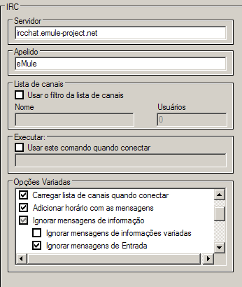 o Aceitar links eD2k no IRC (Use com cuidado)