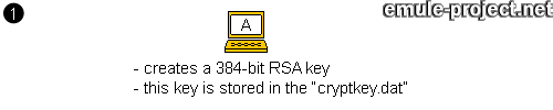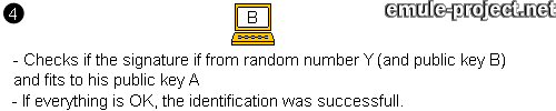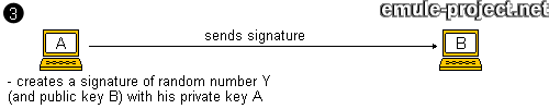 Does client A wants to identify himself on client B at a later time he creates a digital signature and sends it to B. This signature is from his private key, the public key of B and a random value. It is valid until client A changes his IP or client B closes eMule.