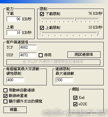 ª`·N: > ¤£ºÞ³Ì¤j³s½u¼ÆÈ¦h¤Ö eMule ±N¤£·|¦b5¬í¤º¶}±Ò¶W¹L20Ó³s½u¼Æ.(¥i¦b©µ¦ù¤º½Õ¾ã)