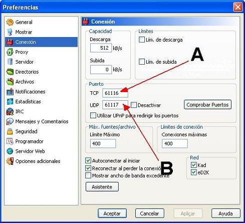 puertos 4662 TCP y 4672 UDP por defecto). Puedes ver qué