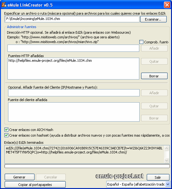 eMule soporta muchas maneras sofisticadas de generar y usar estos