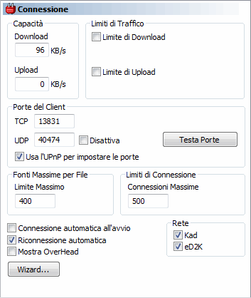 eMule in base alla tua connessione internet. Le impostazioni messe qui