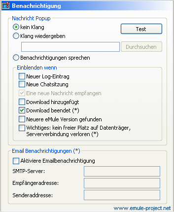 eMule ist in der Lage euch bei verschiedenen Ereignissen über