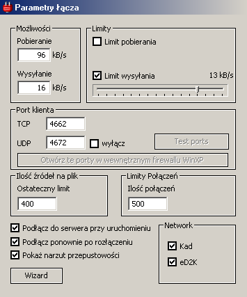 Zmiana numeru tego portu mo¿e byæ konieczna gdy¿ niektórzy dostawcy Internetu blokuj± ruch na domy¶lnych portach eMule.