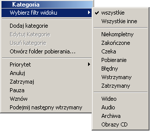 Pierwsz± kategori± jest zawsze wszystkie, która pokazuje wszystkie pobierane pliki lub pliki