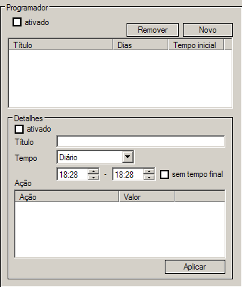 definidas e configurações do tempo na área de Detalhes.