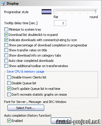 eMule vytváří seznam všech klientů, ke kterým je připojena. Pro šetření pamětí je možno tuto činnost vypnout. Udělejte to na systémech s malým množstvím paměti.