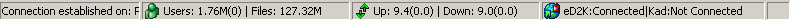 Poté co jste se připojili k serveru, stavový řádek na spodní části eMule by měl vypadat asi takto: