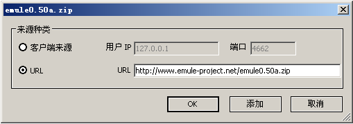 • 客户端来源:添加其他eMule客户使用的IP地址及其端口号。