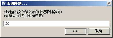 输入针对选定文件的下载来源数量限制,如果是0,则会使用全局设定的来源数量限制,设置全局文件最大来源数在选项->连接->每个文件最大来源数